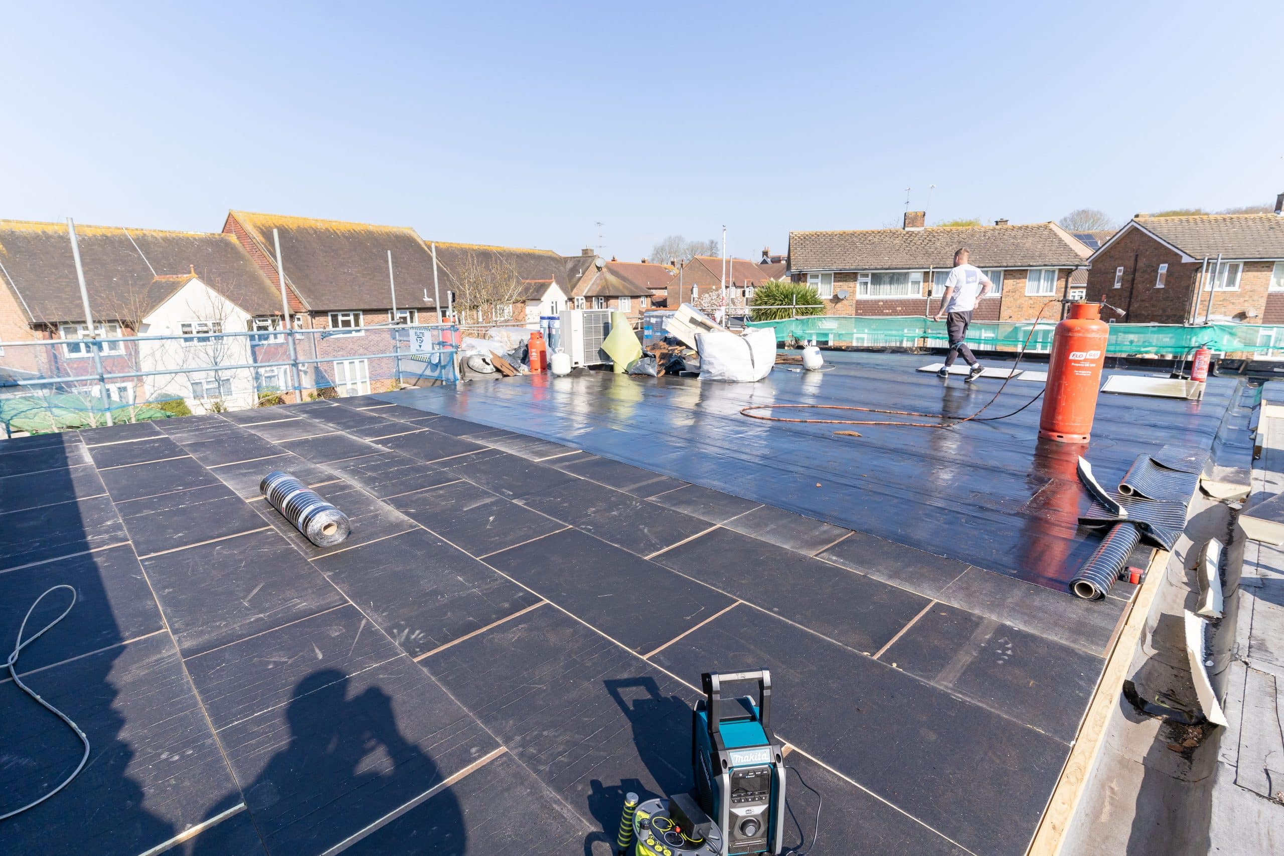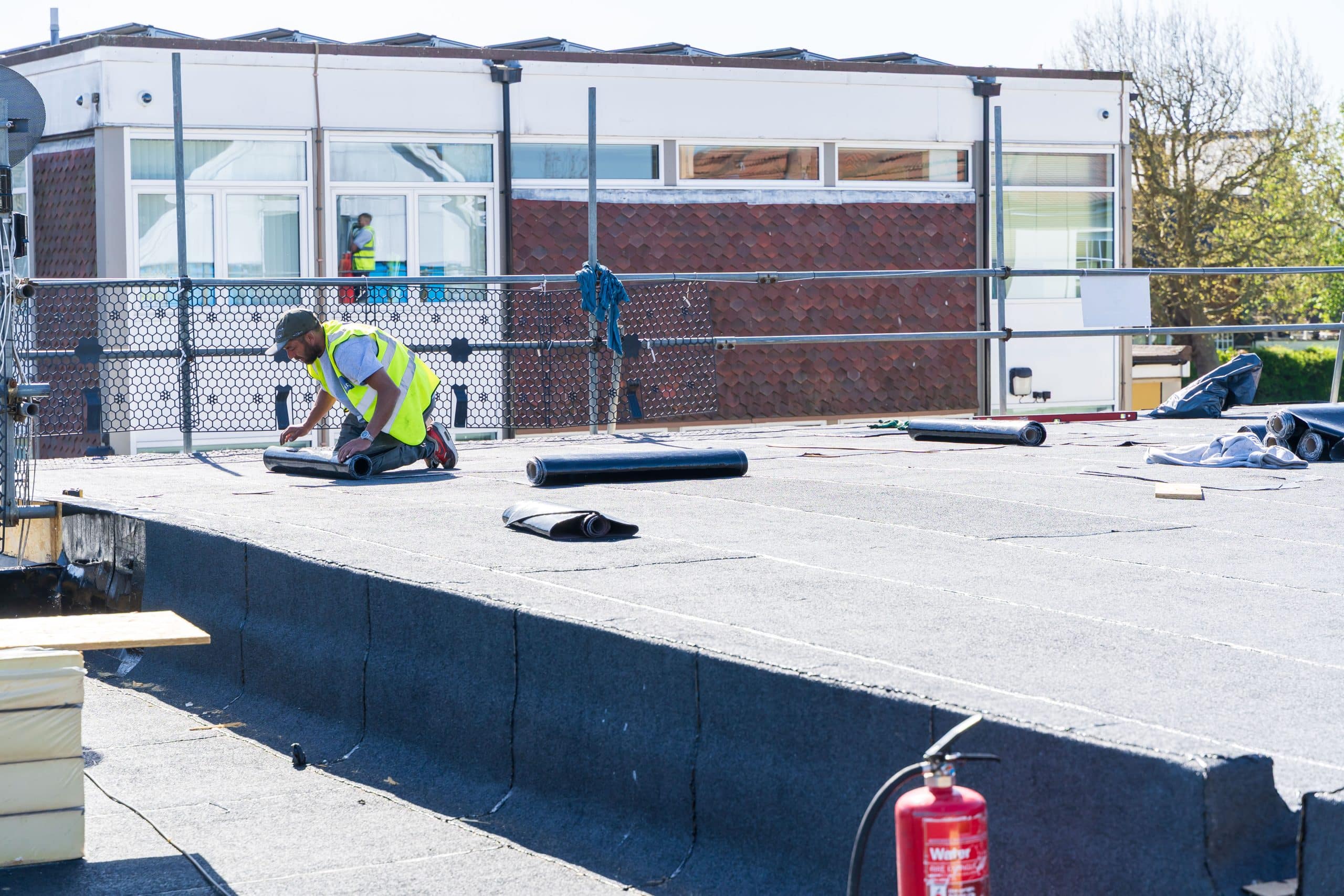 Thermaweld Capsheet: Applying a durable top layer for long-term performance.